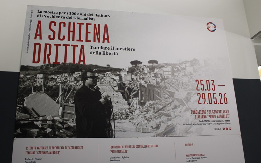 In occasione delle celebrazioni dei cento anni di attività dell’Inpgi, nel pomeriggio di martedì 24 marzo 2026 è stata inaugurata presso la sede dell’Istituto (via Nizza 35, Roma - Fondazione “Paolo Murialdi”) la mostra “A schiena dritta. Tutelare il mestiere della libertà”, patrocinata dal Ministero della Cultura.