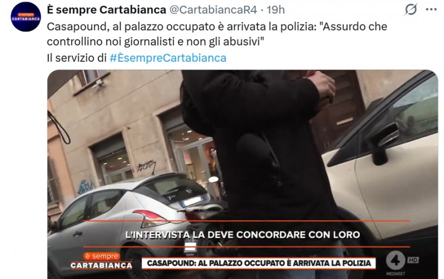 È Sempre Carta Bianca: «Polizia identifica e redarguisce cronista davanti CasaPound»