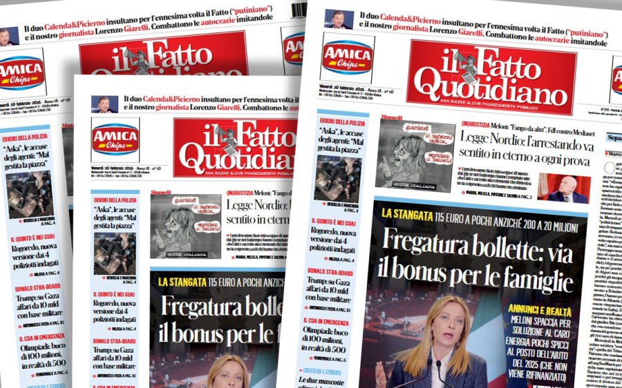 «Sono inaccettabili gli insulti rivolti dall’eurodeputata dem, Pina Picierno, e dal segretario di Azione, Carlo Calenda, al nostro collega Lorenzo Giarelli e al nostro giornale. Denigrare pubblicamente un cronista perché non piace quel che ha scritto è un gesto intollerabile. Definire come 'delirante l'articolo scritto da questo signore', vale a dire un giornalista professionista, o etichettare il Fatto come 'parte attiva di un network di disinformazione' fino a una 'squadraccia dei propagandisti di Putin' costituisce un superamento inquietante e pericoloso dei limiti che garantiscono la libertà di stampa». Così scrivono i Comitati di redazione de il Fatto Quotidiano e de ilfattoquotidiano.it in una nota diffusa venerdì 20 febbraio 2026.