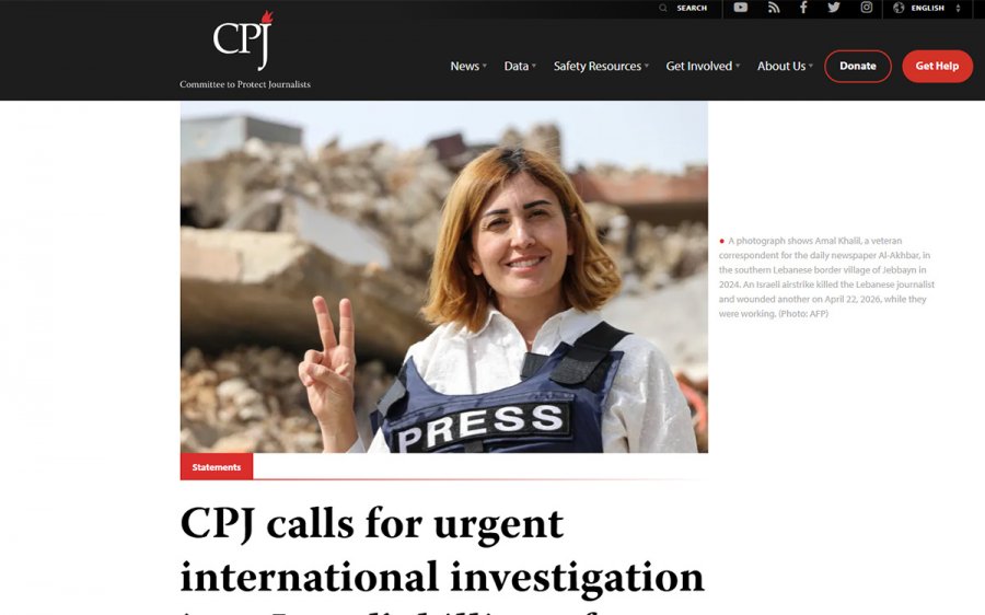 Attraverso una nota pubblicata sul suo sito web, il Comitato per la Protezione dei Giornalisti (Cpj) chiede «un'indagine internazionale urgente sull'uccisione della giornalista libanese Amal Khalil da parte di Israele», avvenuta mercoledì 22 aprile 2026.