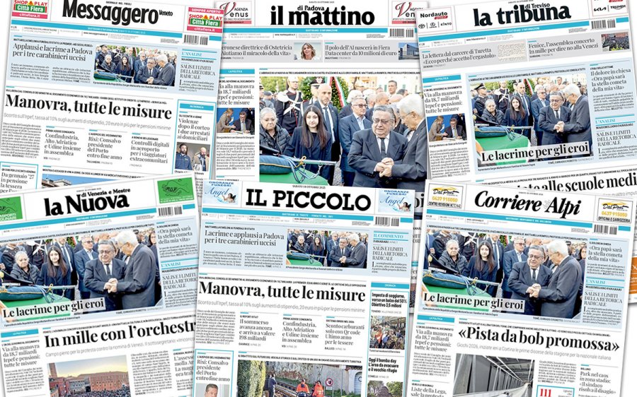 il Mattino di Padova, la Tribuna di Treviso, la NuovaVenezia, il Corriere delle Alpi, il Piccolo di Trieste e il Messaggero di Udine