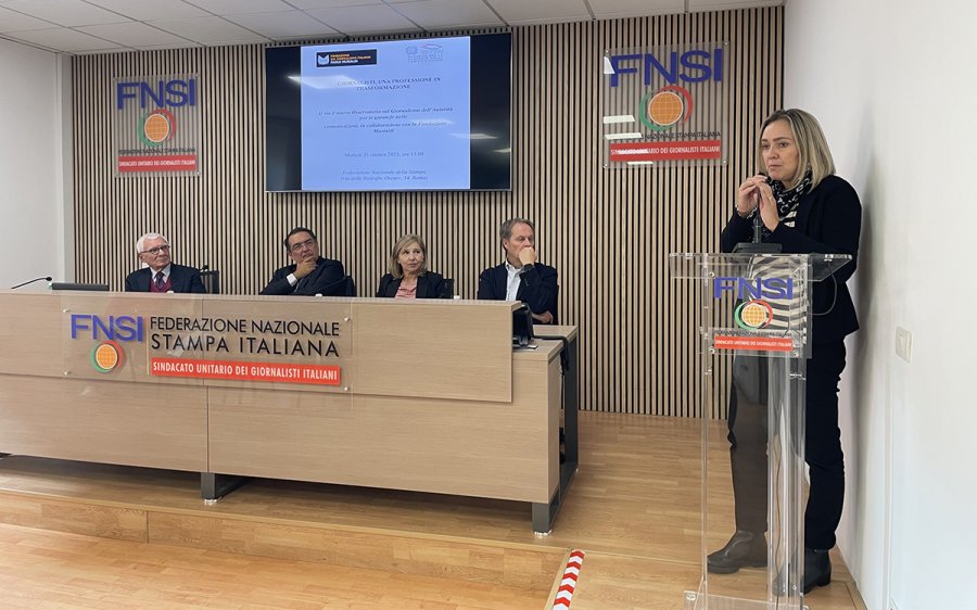 «È sempre difficile avere dati attendibili sulla condizione della professione, che da anni vive una crisi profonda. Eppure, un quadro di insieme è necessario, anche per capire come affrontare questa crisi, come garantire ai giornalisti le condizioni che consentano di assicurare ai cittadini un'informazione di qualità. E questo anche nell'ottica del difficile rinnovo contrattuale che la Federazione della Stampa sta trattando con gli editori della Fieg». Così Alessandra Costante, segretaria generale della Fnsi, aprendo martedì 21 ottobre 2025 la conferenza stampa di presentazione della quarta edizione dell'Osservatorio sul giornalismo promosso da Agcom in collaborazione con la Fondazione per il Giornalismo Paolo Murialdi.