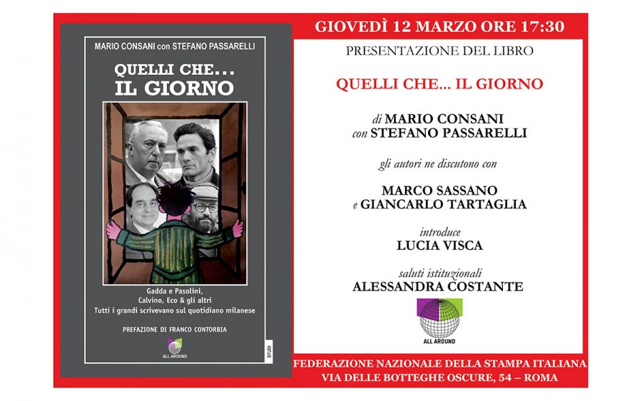 Si svolgerà giovedì 12 marzo 2026 alle 17:30, presso la sala Walter Tobagi della Fnsi (via delle Botteghe Oscure 54, Roma), la presentazione del libro 'Quelli che... Il Giorno', di Mario Consani con Stefano Passarelli.