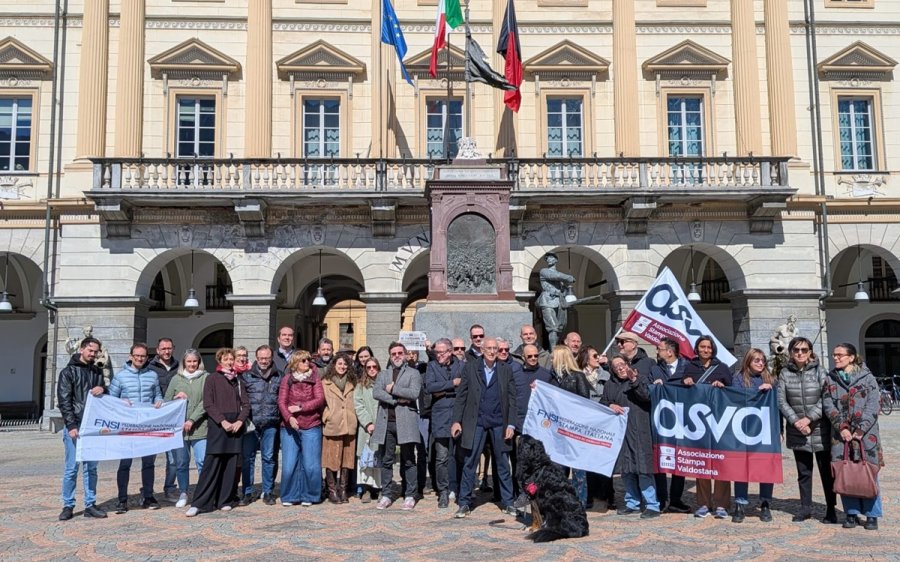 Ad Aosta l'appuntamento con l'Associazione Stampa Valdostana era davanti al municipio e sotto la sede del quotidiano La Stampa. Al fianco dei giornalisti delle principali redazioni della regione erano presenti delegazioni dei sindacati Cisl e Savt. Il sindaco Raffaele Rocco, la vicesindaca Valeria Fadda e il presidente del Consiglio regionale, Stefano Aggravi, hanno manifestato vicinanza all'Asva con la loro presenza in piazza.