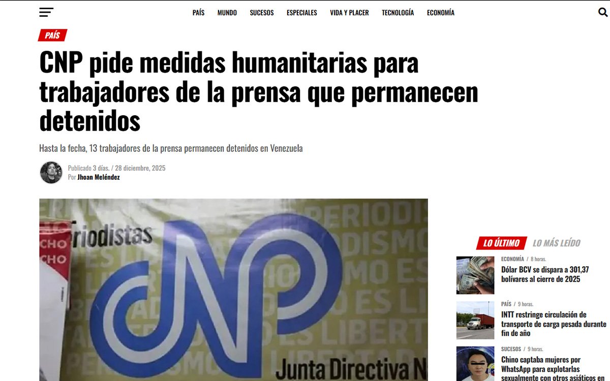 Organizzazioni per la difesa della libertà di stampa hanno chiesto al governo venezuelano la liberazione immediata e incondizionata di 22 giornalisti e altri operatori della comunicazione detenuti, definendo gli arresti «arbitrari» e gravemente carenti sotto il profilo delle garanzie di legge. In una nota riportata dall’agenzia Ansa martedì 30 dicembre 2025, l'Alleanza regionale per la libera espressione e l'informazione ha denunciato violazioni sistematiche del giusto processo, tra cui sparizioni forzate temporanee, negazione dell'accesso ad avvocati di fiducia, periodi di incomunicabilità, mancanza di assistenza medica e assenza di informazioni ufficiali sui procedimenti giudiziari.