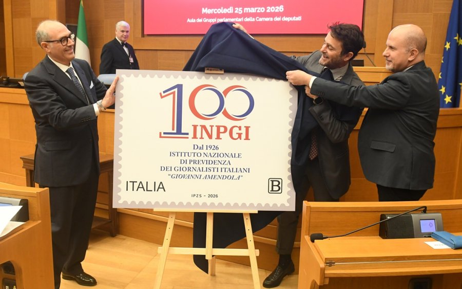 In occasione del centenario dell'Istituto di previdenza dei giornalisti italiani è stato emesso dal ministero delle Imprese e del Made in Italy un francobollo appartenente alla serie tematica 'i valori sociali', stampato dall'Istituto Poligrafico e Zecca dello Stato.