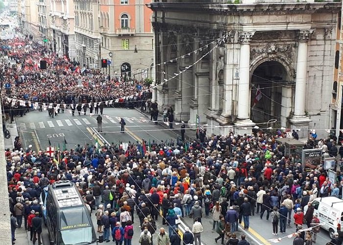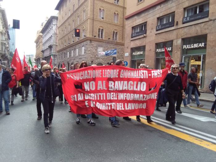 In piazza a Venezia, insieme al Sindacato giornalisti del Veneto e ad Articolo 21, Giuseppe Giulietti. «Ieri come oggi - ha detto il presidente della Fnsi - dalla parte di chi contrasta i bavagli, per la libertà. Significativo che il corteo sia giunto in Ghetto ebraico, da cui nazisti e fascisti deportarono decine e decine di persone, molte delle quali non tornarono. Oggi come ieri contro fascismo, razzismo, sfruttamento del lavoro».