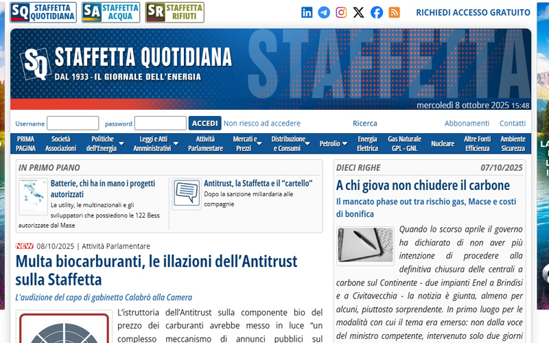 «Rilevare rigorosamente i prezzi dei biocarburanti, chiederne conto ai petrolieri prima di pubblicarli ed essere definiti dall'Antitrust "facilitatori" del presunto "cartello" dei produttori sugli stessi biocarburanti, una delle voci comprese nel prezzo alla pompa dei combustibili. È il paradosso di cui sono vittime i colleghi de La Staffetta Quotidiana – giornale indipendente del settore energetico che esiste dal 1933». Lo si legge in una nota diffusa dall’Associazione Stampa Romana mercoledì 8 ottobre 2025.