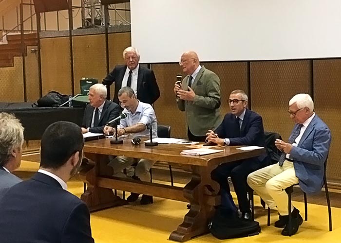 Durante l'assemblea, nella quale hanno preso la parola anche il prefetto di Firenze Laura Lega, il presidente della Casagit Daniele Cerrato, il segretario dell'Usigrai Vittorio Di Trapani, il presidente dell'Ungp Guido Bossa e il direttore generale della Fnsi, Giancarlo Tartaglia, è stato assegnato un riconoscimento a Raffaello Paloscia per i 70 anni della sua attività di giornalista sportivo. A consegnarglielo il presidente dell'Ussi Toscana Franco Morabito e l''eterno 10' della Fiorentina Giancarlo Antognoni. (Ansa – Firenze, 5 ottobre 2018)