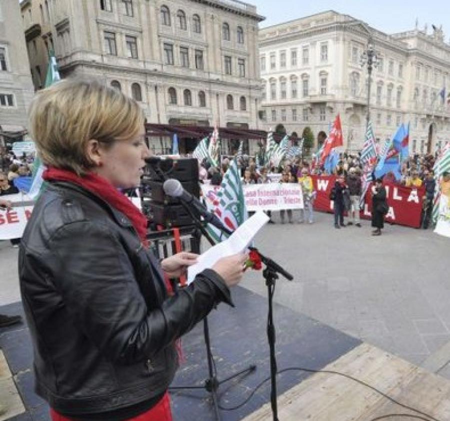 I temi del precariato giornalistico sono stati portati sul palco del Primo Maggio, ieri a Trieste, in piazza dell'Unità, da Poljanka Dolhar, vicepresidente dell'Assostampa Fvg e consigliere nazionale della Fnsi. In un applaudito intervento in italiano e in sloveno, dinanzi alle migliaia di persone che hanno partecipato al tradizionale corteo organizzato da Cgil Cisl Uil, Poljanka Dolhar - che è una giornalista precaria del Primorski Dnevnik, quotidiano della minoranza slovena in Italia - ha ricordato il dramma del precariato in tutti i settori del mondo del lavoro, ma in particolare in quello dell’informazione.