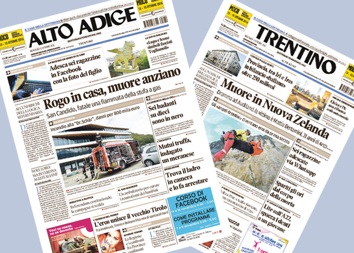 I quotidiani "Alto Adige" e "Trentino" tornano ad assumere e riaprono le redazioni periferiche di Merano, Rovereto e Riva del Garda. Una buona notizia, accolta con soddisfazione dal sindacato regionale dei giornalisti.