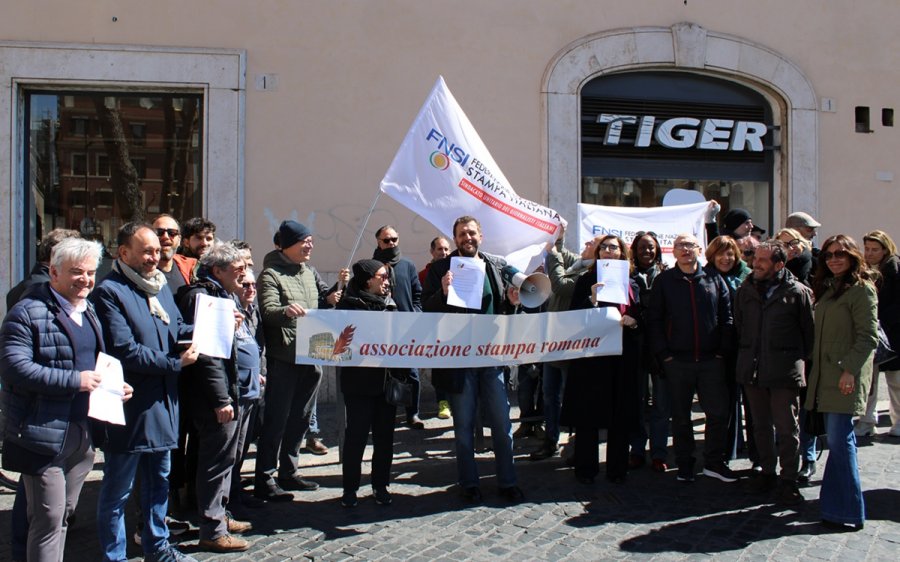 Giornalisti in piazza nelle principali città italiane nella giornata di astensione dal lavoro proclamata dalla Fnsi venerdì 27 marzo 2026 per protestare contro le chiusure della Fieg alle proposte avanzate dal sindacato al tavolo per il rinnovo del contatto nazionale di lavoro, scaduto da ormai 10 anni.