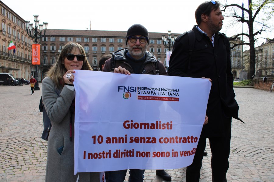 Torino, giornalisti in piazza per il contratto e l'equo compenso