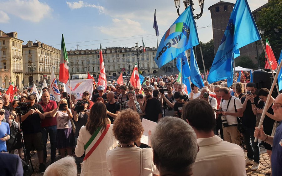 Affollata manifestazione questo pomeriggio davanti alla prefettura di Torino per il presidio promosso da Ordine dei Giornalisti del Piemonte, Associazione Stampa Subalpina e dalle associazioni che si riconoscono nella Via Maestra a seguito dell'aggressione della quale è stato vittima il giornalista de La Stampa Andrea Joly. Al presidio, a cui hanno partecipato rappresentanti istituzionali, sindacati, colleghi del cronista malmenato e cittadini, è stata ribadita l'importanza della libertà di stampa e la necessità che venga sempre difesa.